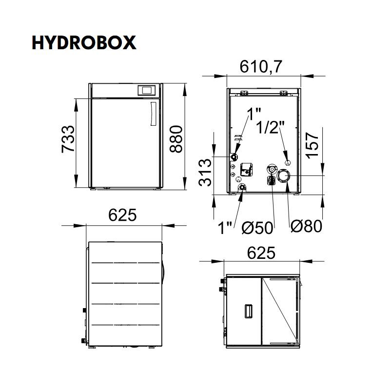 • Dimensions : L 611 x P 625 x H 880 mm