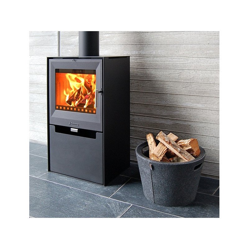 Le poêle à bois Aduro 14 se distingue avec un design cubique, épuré et élégant. Il allie esthétique et performances avec ses 9 kW de puissance permettant de chauffer jusqu’à 140m², son dispositif de régulation automatique de l’air (Aduro-tronic) et son système efficace de nettoyage de la vitre. Sa grande réserve de bois fermée par un battant est utile pour stocker le bois et les accessoires. La porte en fonte du poêle représente aussi un atout pour assurer une meilleure diffusion de la chaleur dans la pièce. La fonte emmagasine la chaleur et la restitue longuement, même après extinction du feu.