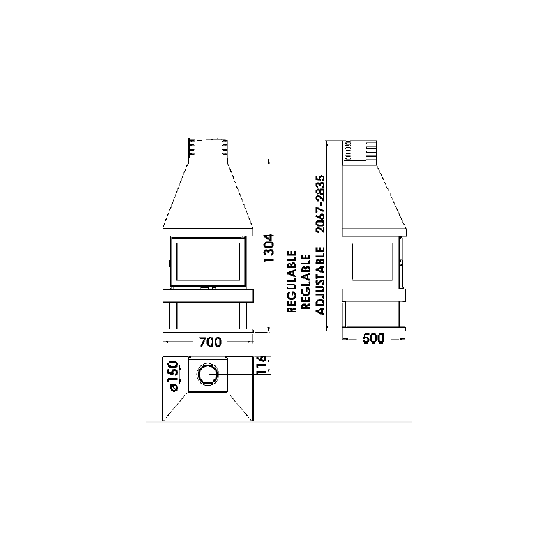 • Diamètre sortie des fumées : 150 mm