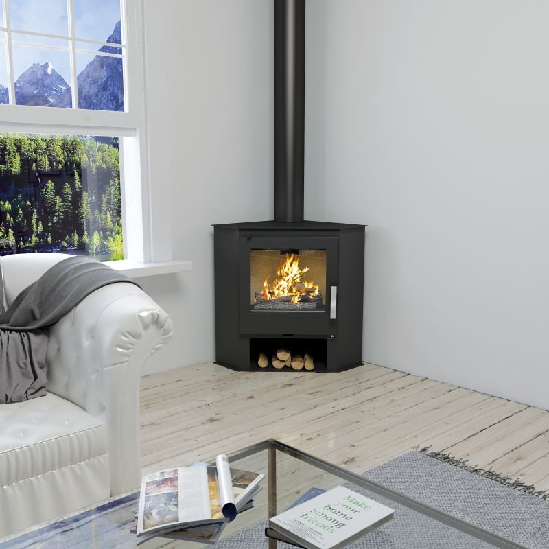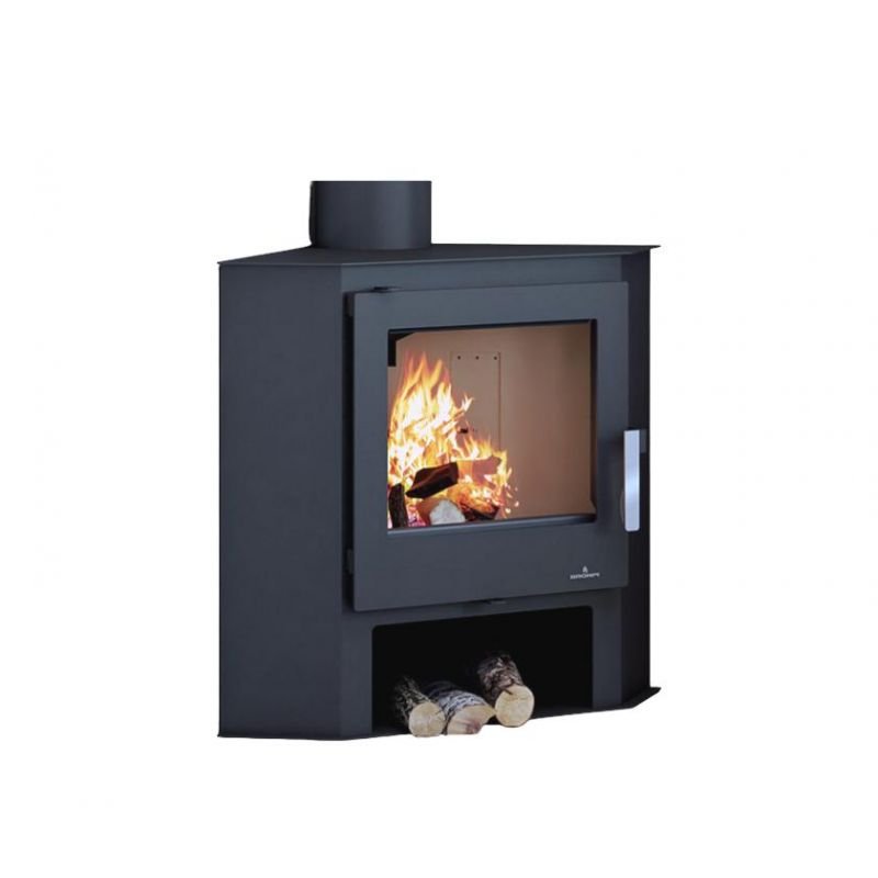 Son petit espace situé en dessous du foyer vous permettra de ranger vos bûches de bois et son design fait de lui le poêle à bois d’angle idéal !